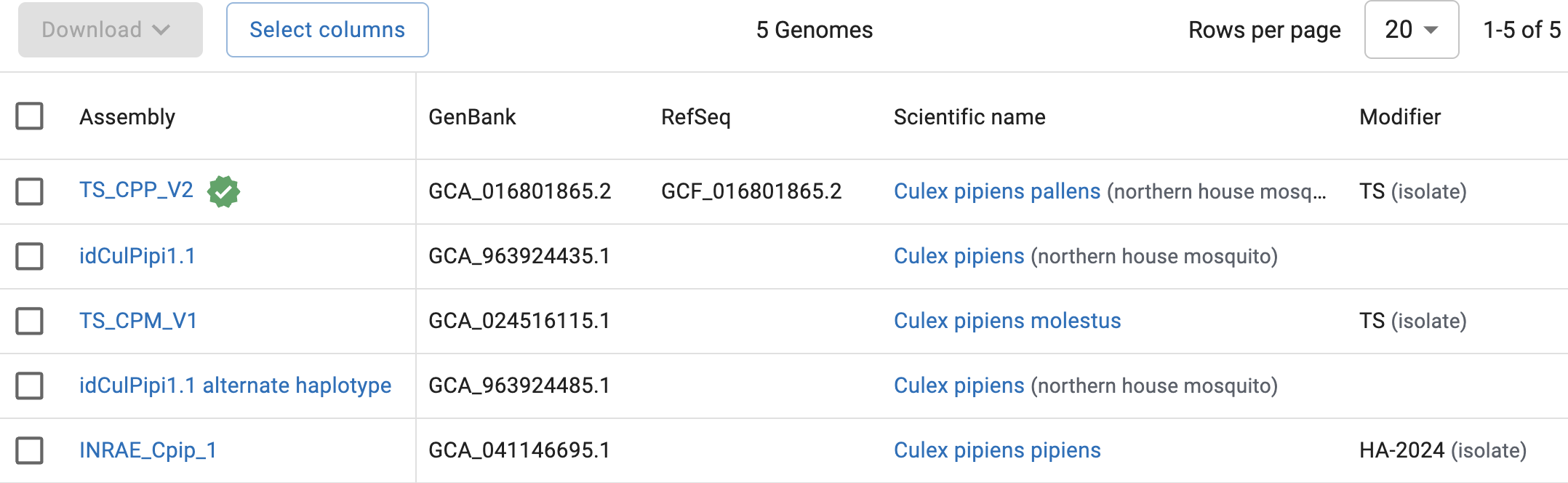 Imagine you are one of the researchers involved in the Culex study. You’d want to find out if a Culex pipiens reference genome is available, and if so, download the relevant files. The authors state the following in the paper: