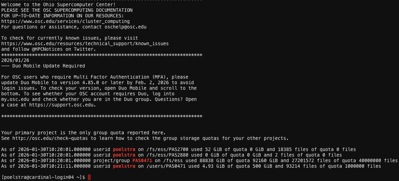 Access to OSC storage space and compute nodes is managed through projects. For this course, we have a project called PAS2880, which you have been added to.