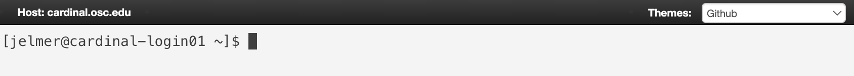 For example, below, user jelmer is on node cardinal-login01 in folder ~, where: