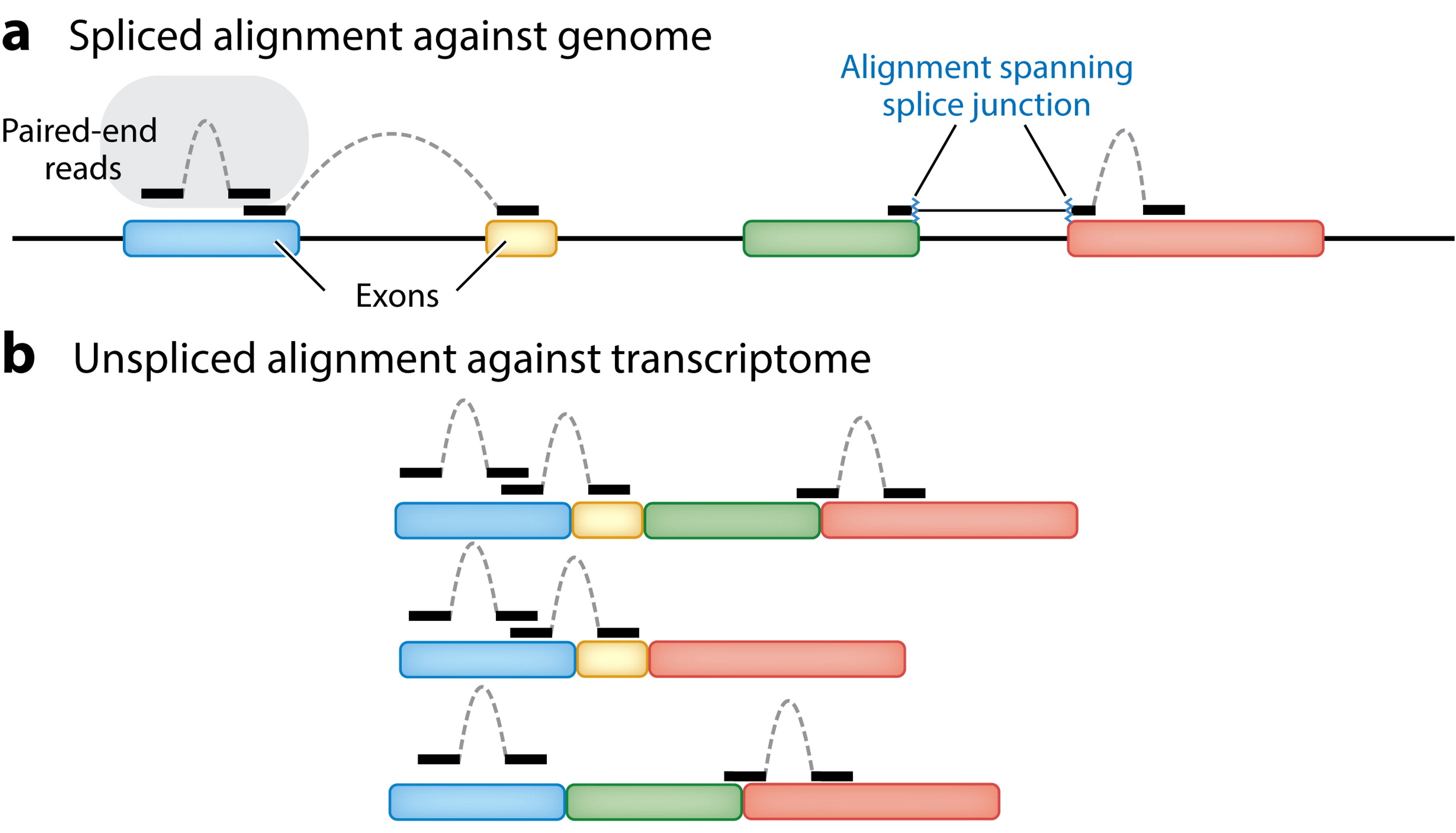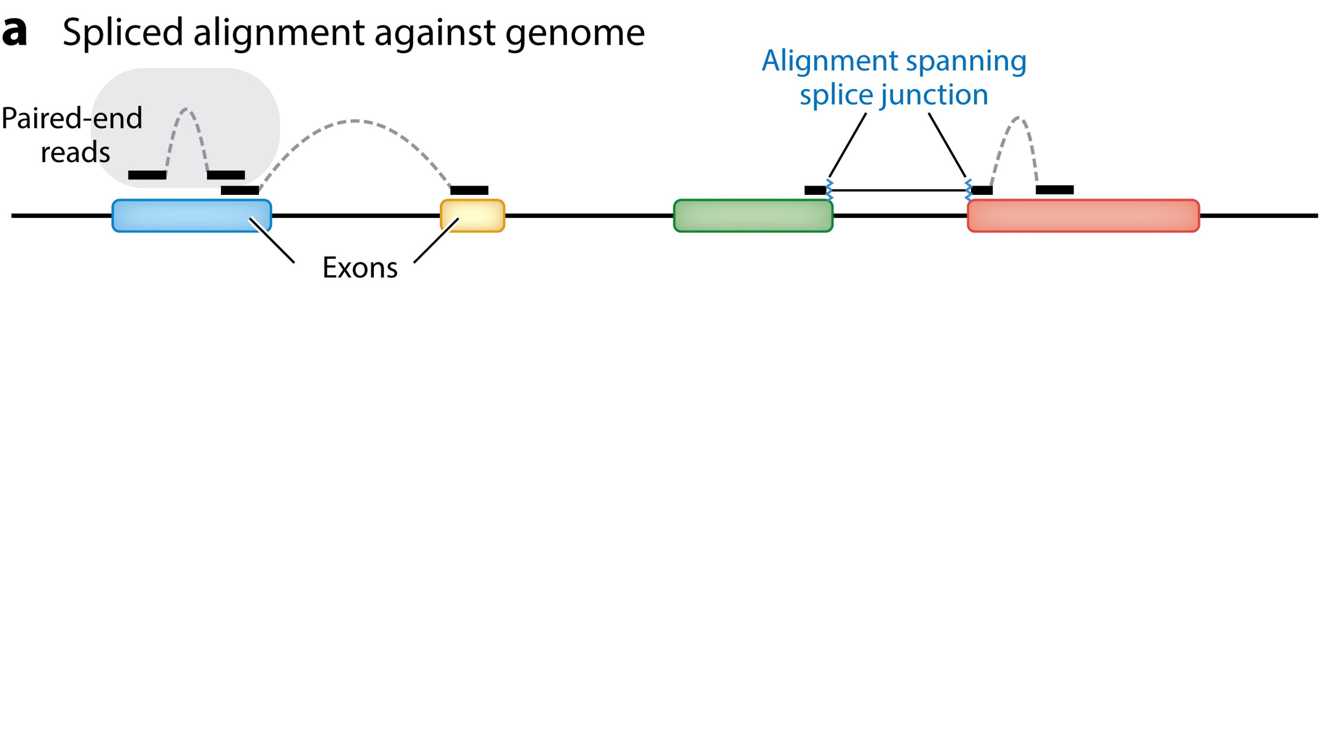 So, the alignment of reads to a reference genome needs to be “splice-aware”: