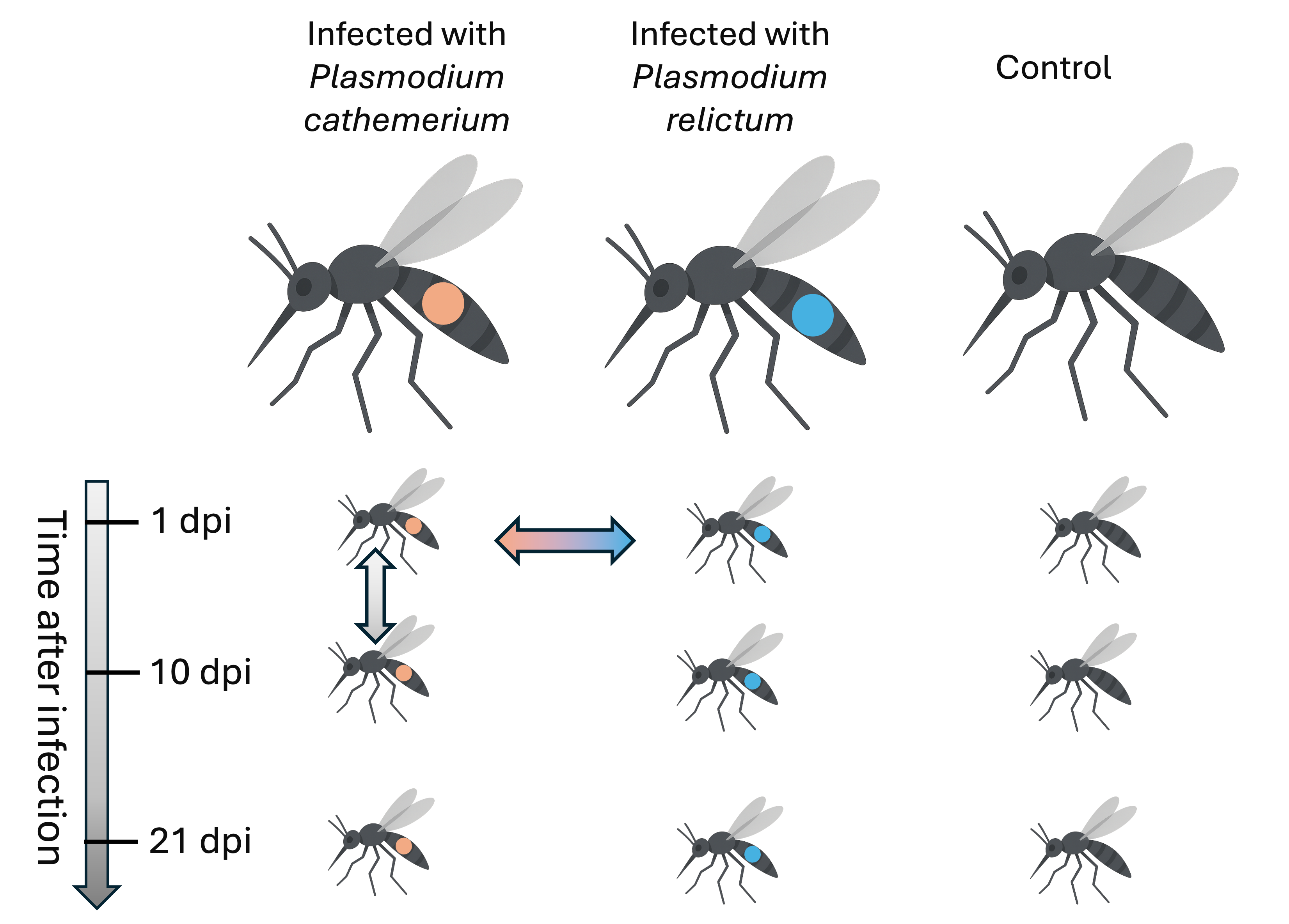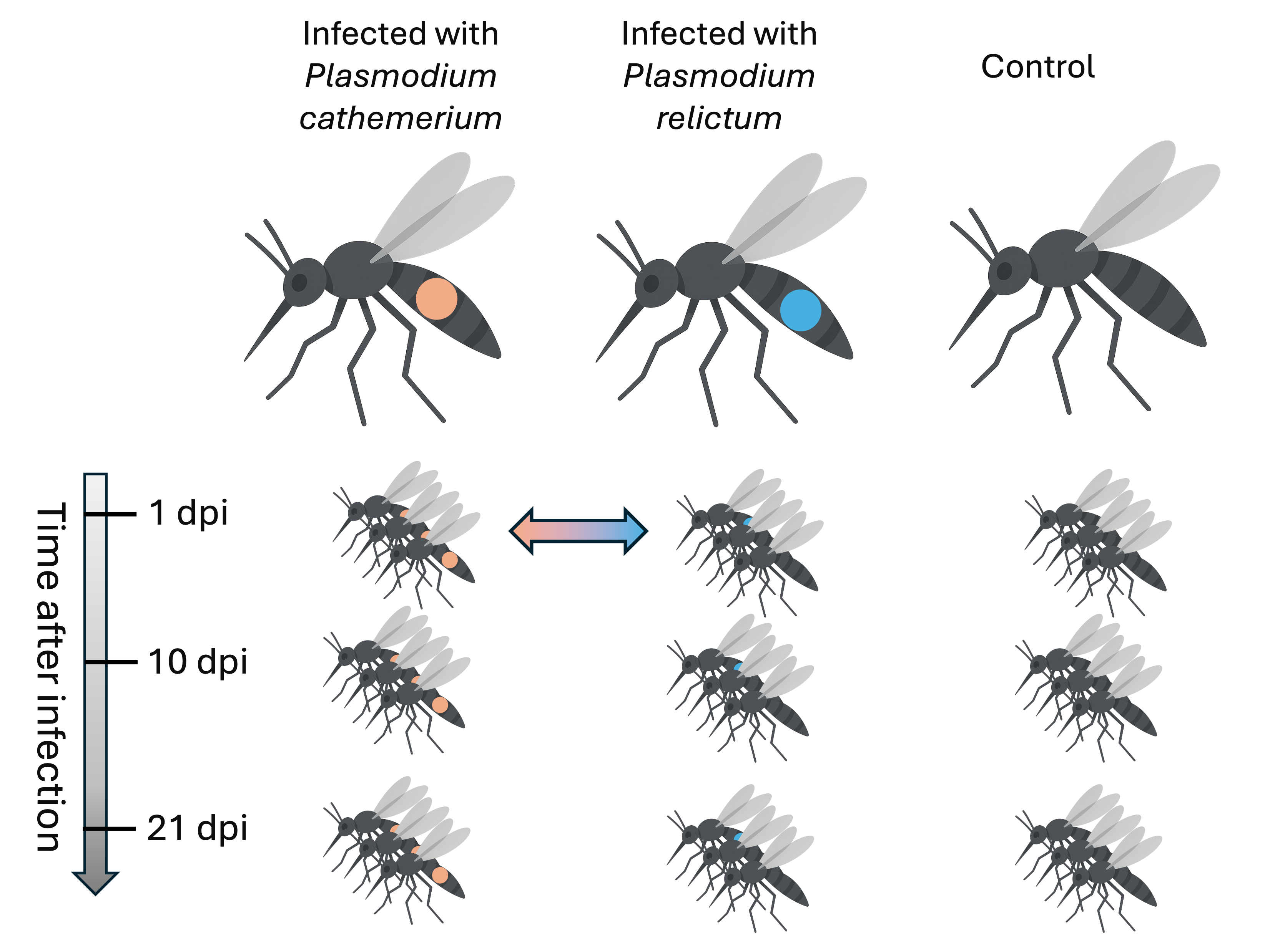 Culex pipiens mosquitos infected with malaria-causing Plasmodium protozoans:
