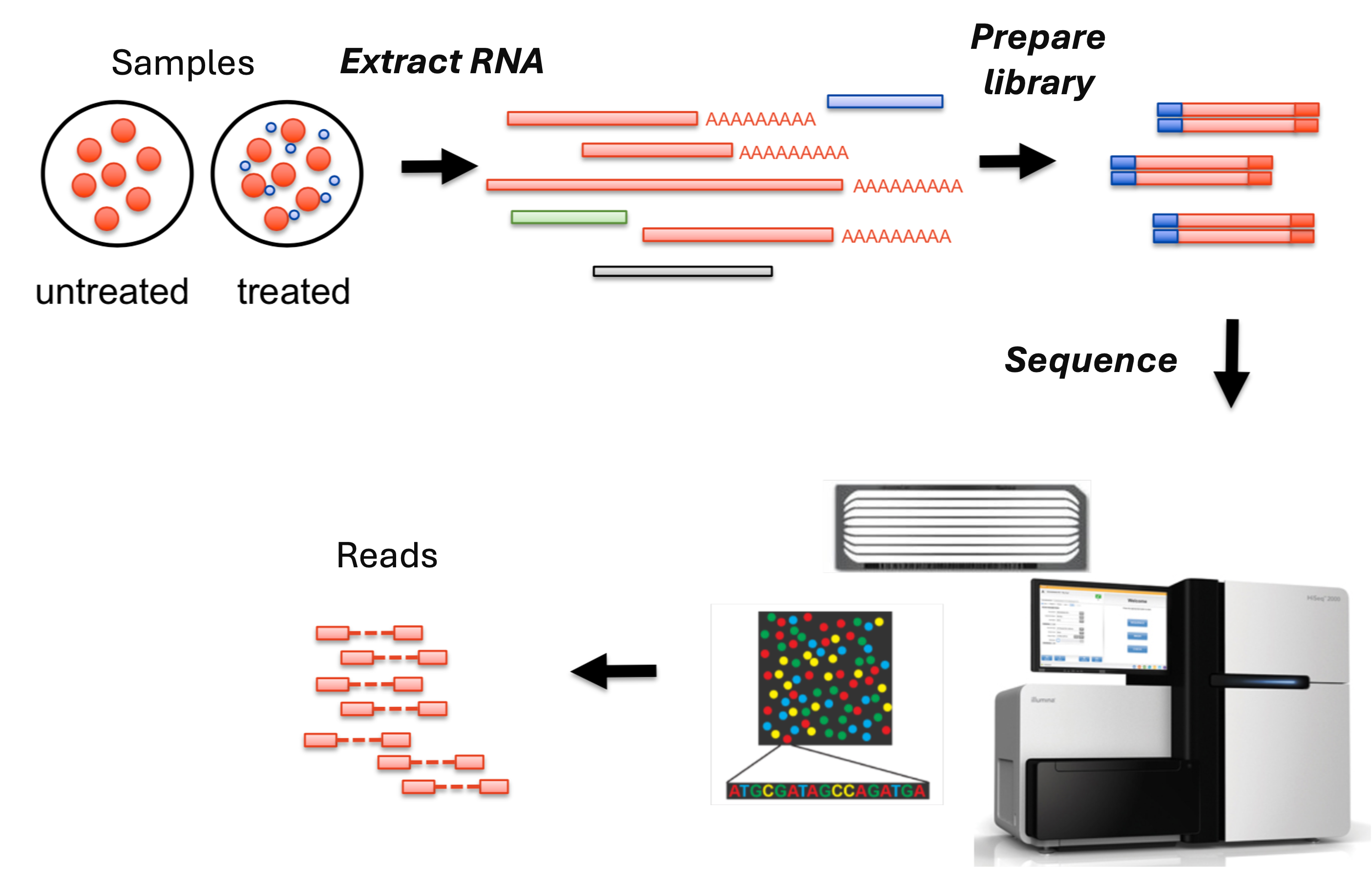 To estimate gene expression levels genome-wide, RNA-Seq takes a brute-force approach by randomly sequencing of millions of RNA fragments per sample