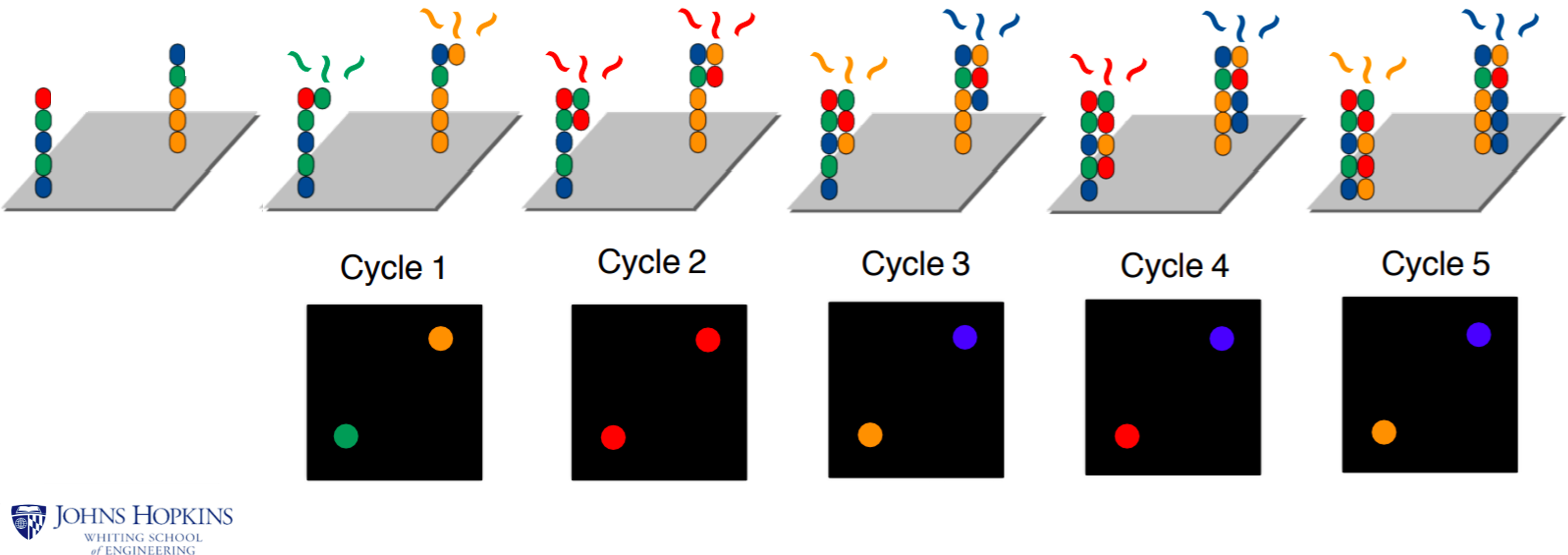 and taking a picture each time a new nucleotide is incorporated: